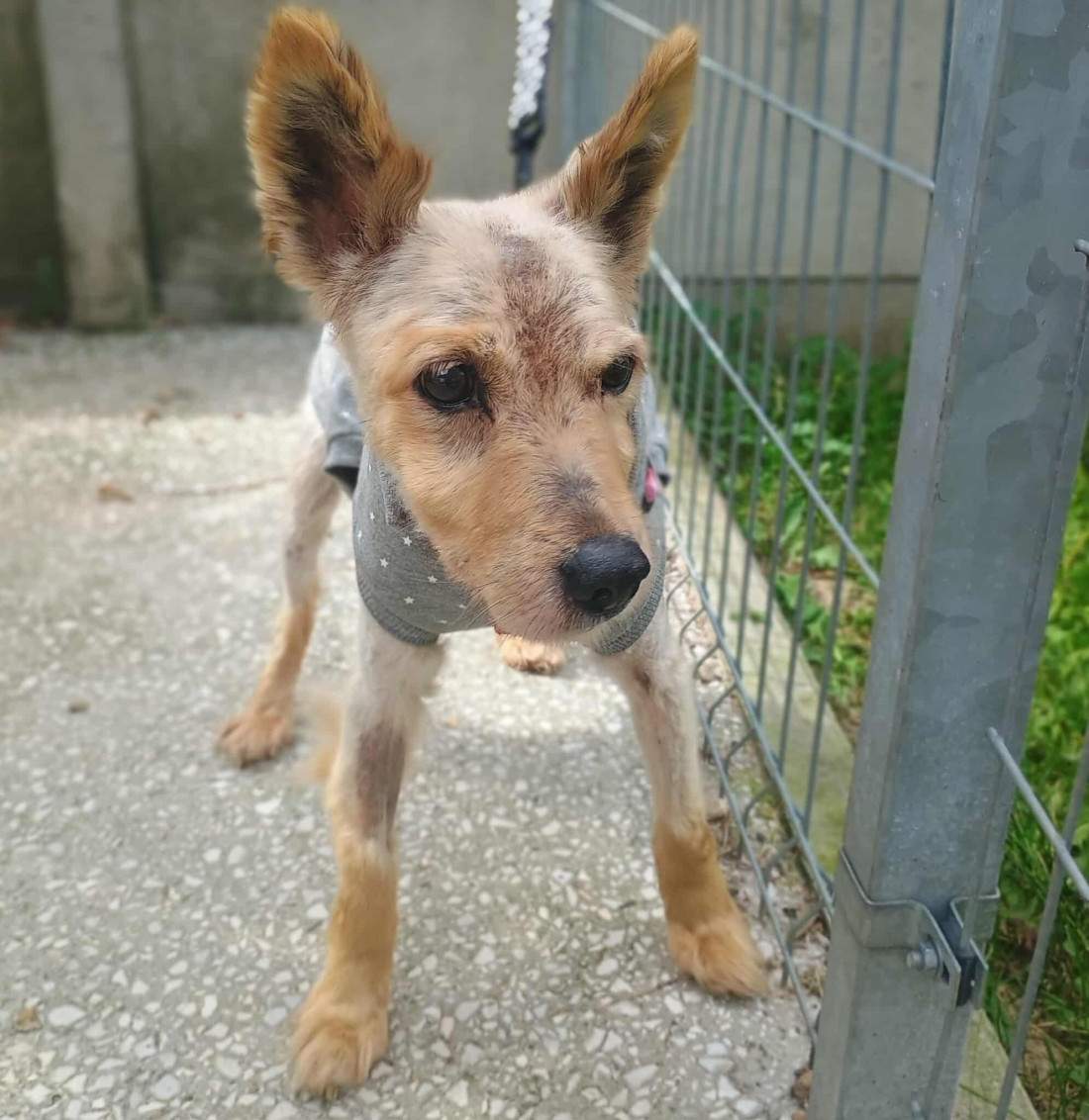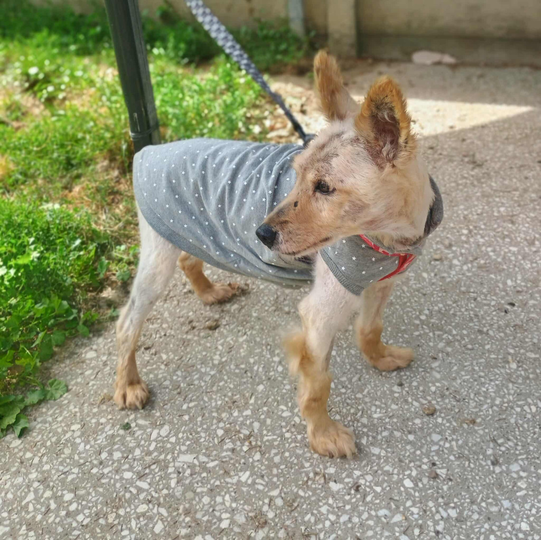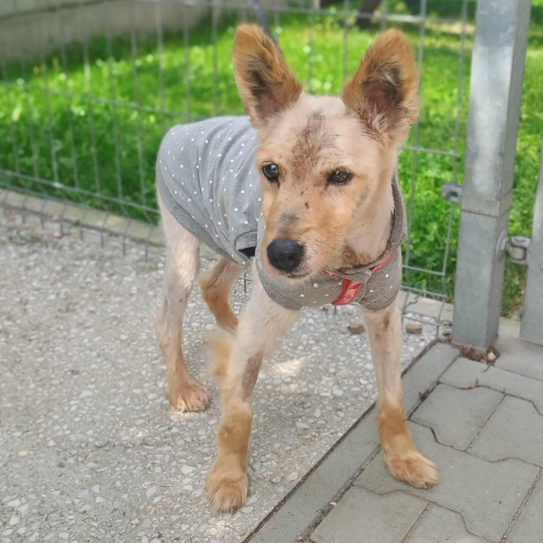 NJORD - Psiak znaleziony na Ul. Cmentarnej. Serce pękło nam kolejny raz. Trafił do nas kolejny, zniszczony przez życie pies – a raczej jego cień. Njord… tak go nazwaliśmy, bo chcieliśmy, żeby to imię niosło siłę, której będzie potrzebował w walce o zdrowie i życie. Gdy do nas trafił, nie było już sierści – był filc, gnijący kołtun, pod którym żyły larwy much. Tak, żywe larwy, karmiące się jego ranami. Pchły i kleszcze zjadały go żywcem. Skóra z ranami – jedna wielka tragedia. Musieliśmy go ogolić – nie dla estetyki, ale żeby mu pomóc i usunąć wszelkie kołtuny i pasożyty z jego ciała. Njord przez lata musiał być zaniedbywany. Niewidzialny. Cierpiący po cichu, bez głosu, bez nadziei. Ktoś patrzył na niego i nie pomógł mu, mimo tego, że był w tak dramatycznym stanie. Njord ma także zwyrodnienia kręgosłupa. Każdy ruch to dla niego wysiłek. Nie ma siły, nie wstaje sam, musimy go karmić, bo nie daje sam rady. Przyjechał do nas zrezygnowany, cichutki. Ale jego stan dosłownie krzyczał o pomoc… Teraz, to już inny pies, choć nadal po jego ciele widać, co przeżył. Stanął na nogi, powolutku drepta na spacerki czy wybieg. Teraz marzymy już tylko o domu – po to, żeby choć na koniec swojego życia zaznał miłości i troski…