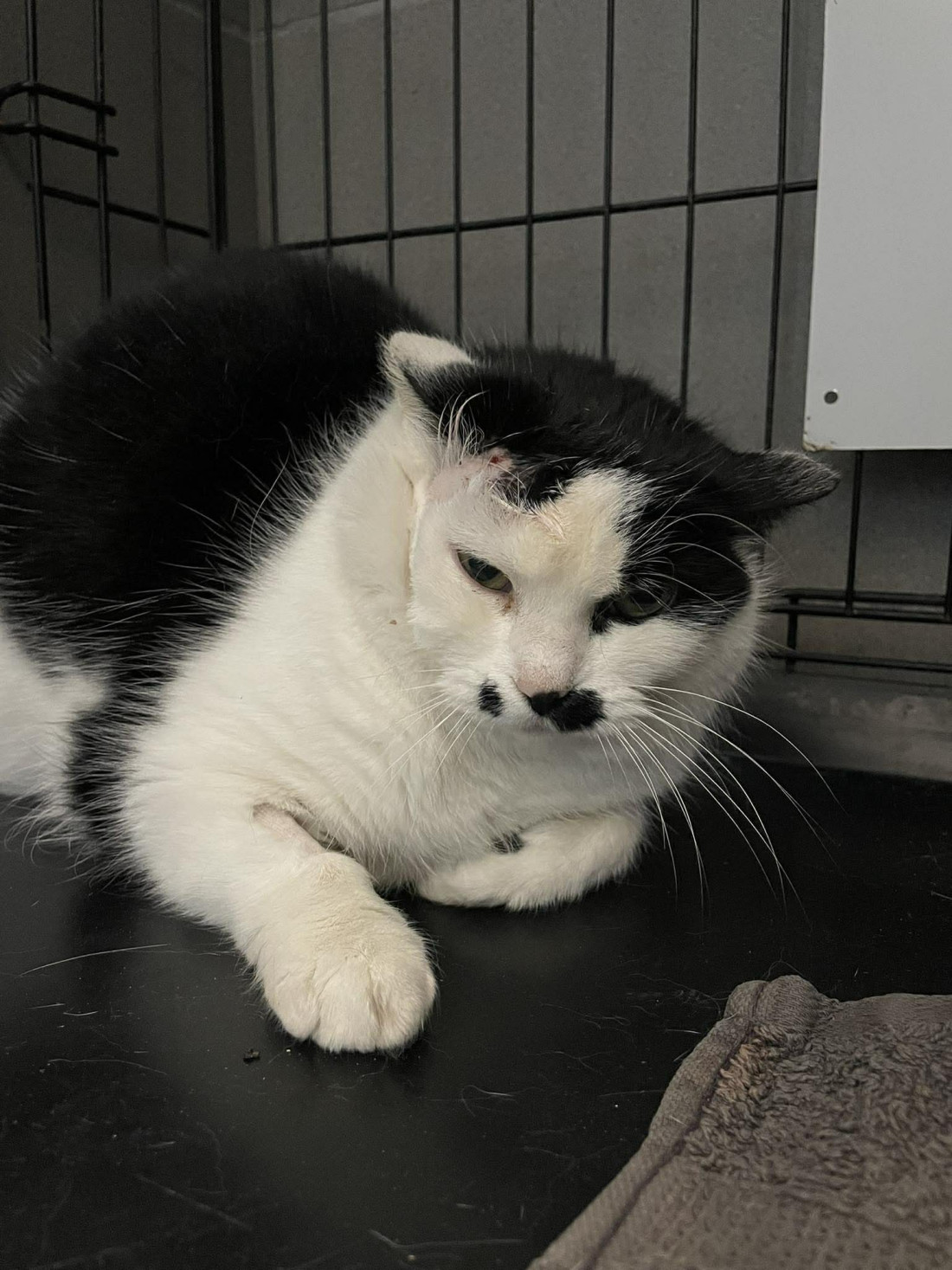 A140 - kociczka złapana na ul. Hożej. Trafiła do nas na leczenie.