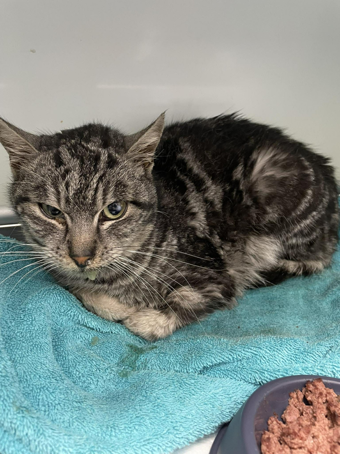 B5 - kotek wolno żyjący z ul. Górnej. Trafił do nas na leczenie.