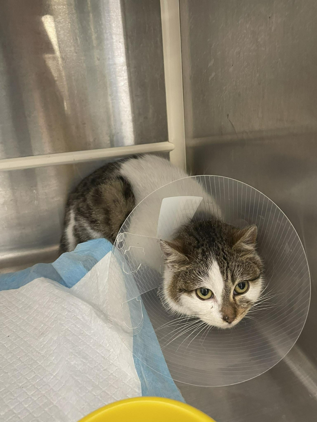 B4 - kotek wolno żyjący z ul. PIekoszowskiej. Trafił do nas na leczenie.
