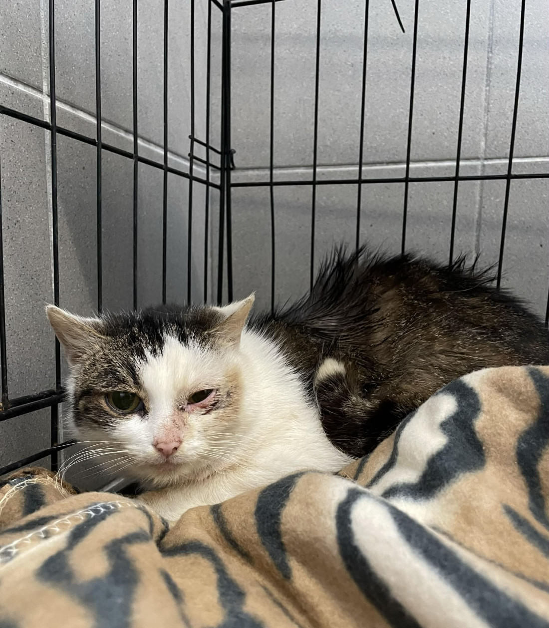 B6 - kotka wolno żyjąca z ul. Grochowej. Trafiła do nas na leczenie.