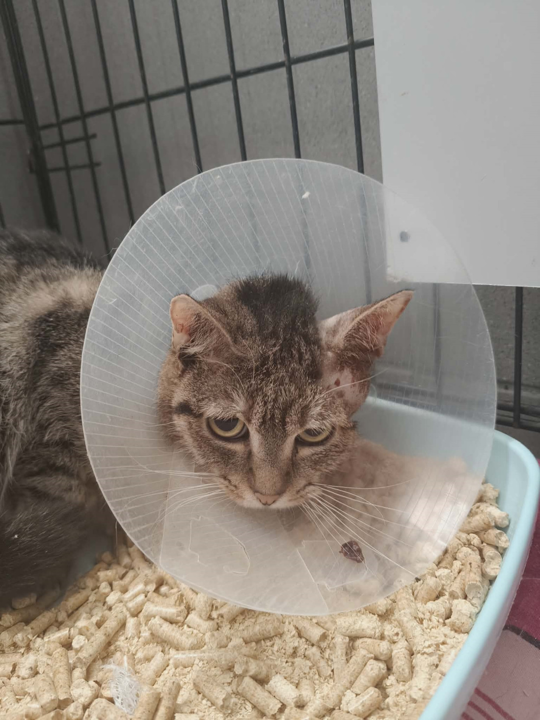 B22 - kotka która trafiła do nas na leczenie. Korzysta z kuwety.