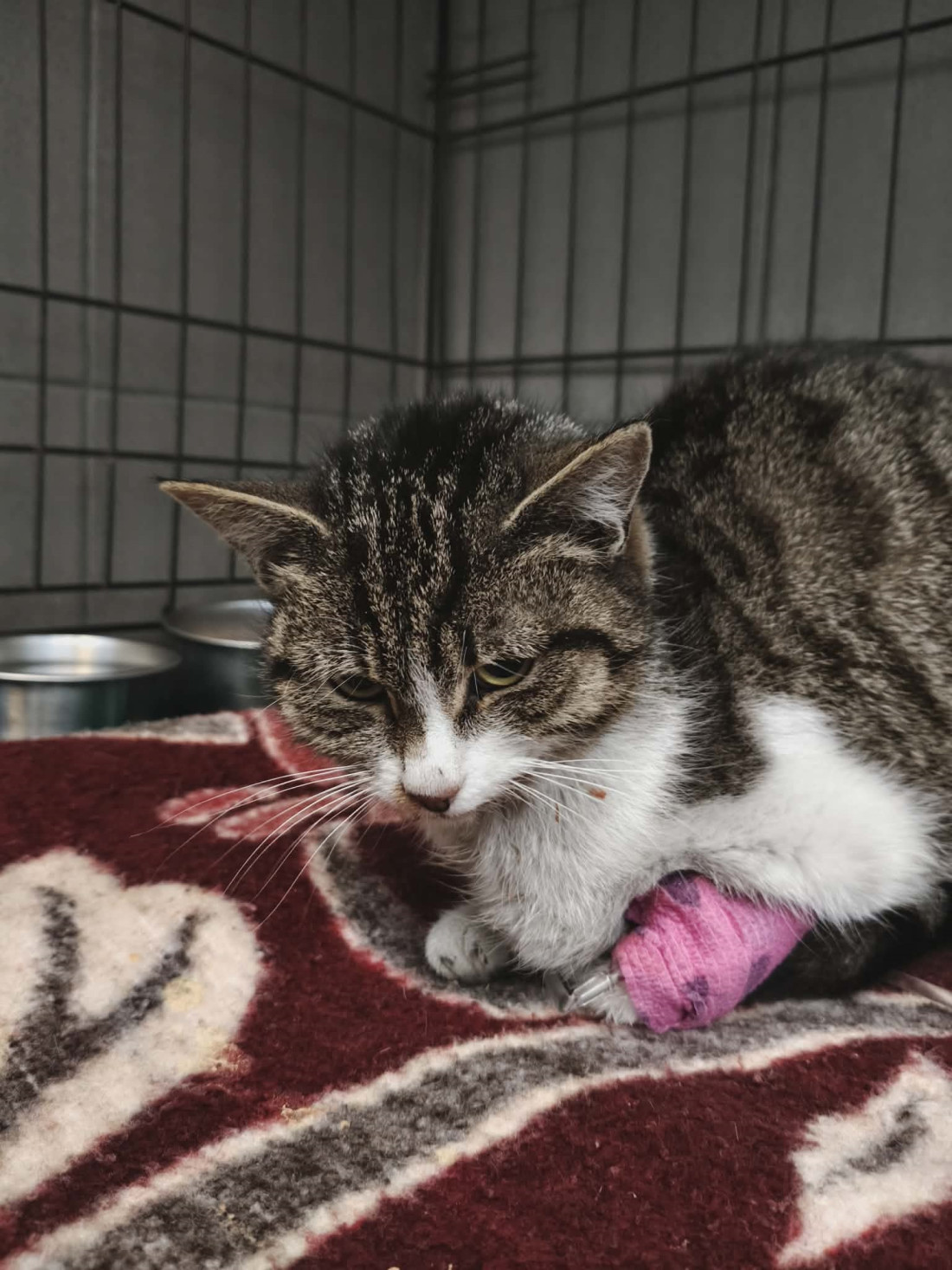 B23 - kotka która trafiła do nas na leczenie. Korzysta z kuwety.