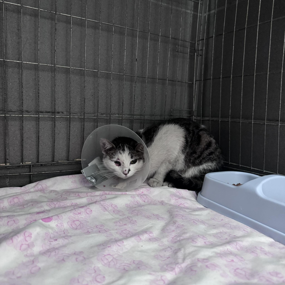 B28 - kociczka wolno żyjąca z ul. Piekoszowskiej. Trafiła do nas po wypadku, na leczenie. Kotka bardzo źle znosi warunki zamknięcia, jest zupełnie dzika - unika kontaktu z człowiekiem.