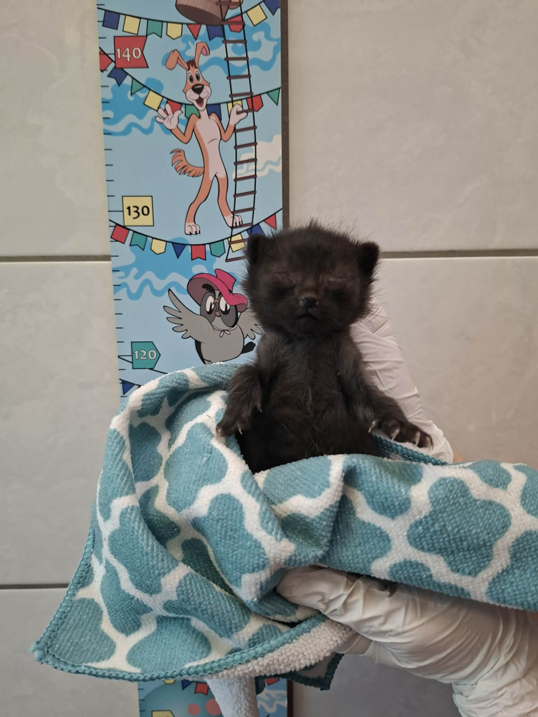 WĘGIELEK - kociątko znalezione na ul. Chrobrego. Trafił do nas z zaawansowanym kocim katarem, z oczkami zalepionymi ropą i katarem :( Kociątko jest w trakcie leczenia. Nie je samodzielnie, jest dokarmiany preparatem mlekozastępczym.
